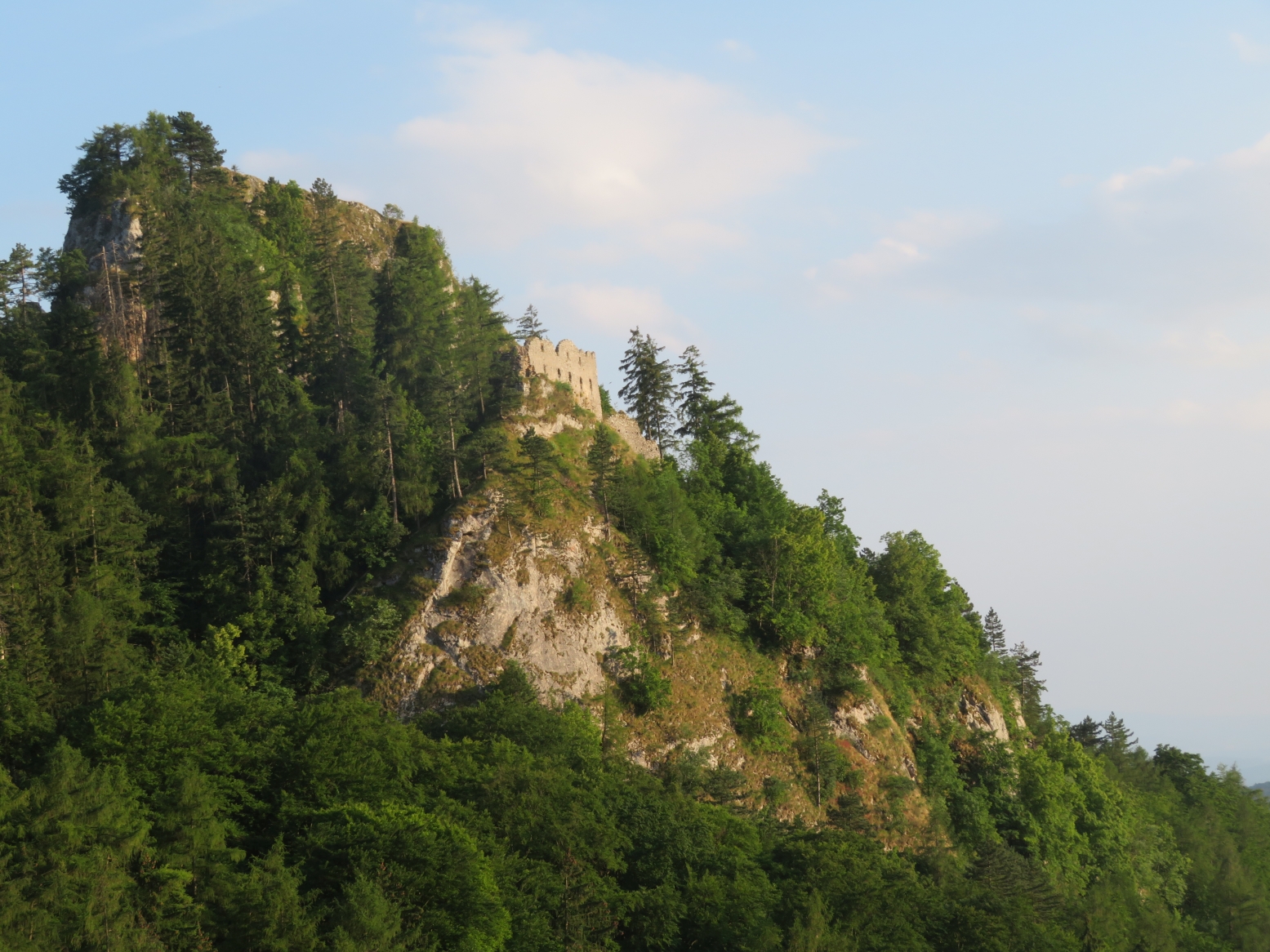 První den pochodu jsme odjeli do Brumova, kde jsme se na náměstí naobědvali a vydali se na cestu. Naše kroky zamířily přes vrchol Průklesy ke státní hranici, kterou jsme v odpoledních hodinách překročili. Na Slovensku jsme navštívili zříceninu hradu Vršatec. Potom nás čekal už jen kousek cesty k přístřešku u vesnice Červený Kameň, kde jsme uvařili večeři a uložili se pod širák ke spánku. Za první den pochodu jsme nastoupali 700 výškových metrů a ušli 15 km.