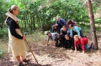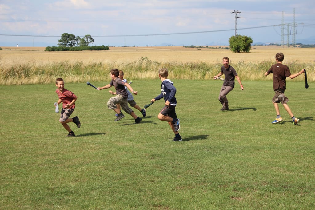 Po snídani jsme se od šamana dozvěděli o zvláštní časové anomálii, která nás přenese do tajuplného světa duchů. Duchové, kteří nám svou mocí jindy pomáhají, prý jsou v ohrožení, neboť do jejich světa pronikly nebezpečné bytosti, nazývané Héti. Proto jsme se vydali duchy zachránit. Nejprve jsme museli postavit mohyly, na jejichž zbudování bylo potřeba získat řadu rozličného materiálu od dřeva a kamenů až po mech či obilí. Stavbu nám komplikoval náročný průchod kolem slepých strážců i nebezpečných Hétů, kteří po nás házeli papírové koule. Na jiném místě jsme zase museli řešit zapeklité hádanky. Po obědě nadešla velká bitva s mstícími se Héty – bojovali jsme pomocí zbraní, vytvořených z ponožky a papírových koulí a po dlouhém boji jsme naše protivníky nakonec úspěšně porazili. Přibližně ve stejnou dobu dorazili naši nejmladší kamarádi, kteří si vyrobili náramky ve kmenových barvách, a poté se k nám na závěr bitvy připojili. Před večeří nás čekalo rýžování zlata a hraní sportů, které jsme nestihli dokončit včerejšího dne. Večer jsme vyráběli korálkové náhrdelníky.