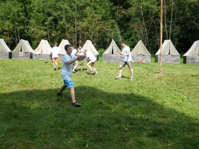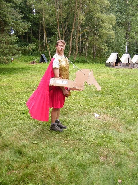 Ráno po strašně dlouhém vstávání jsme konečně vstali ze svých pelíšků. Po velmi namáhavé rozcvičce jsme se umyli a odebrali jsme se ochutnat lahodnou ovesnou kaši, kterou nám uvařil náš milý Tom. Potom jsme slepovali boží vázu, kterou rozbil velký otec Řeků. Když jsme zprávu přečetli, dozvěděli jsme se, že máme udělat lavičku, mohilu a svatyni. Pak byl oběd, který nám uvařil opět Tom. Po poledním klidu jsme pro pobavení krále pořádali vozatajské hry. Po těchto hrách byla svačina a poté jsme si vyzkoušeli jaké je to být králem. A nakonec jsme dostali mramorové kvádry za své výkony ve hrách. (Vlasáč, Old Shatterhand)