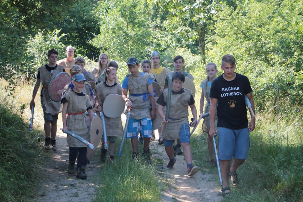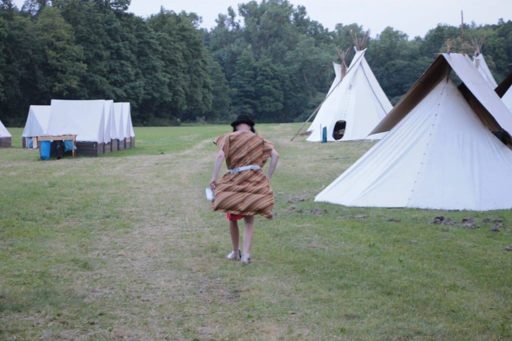 Dopoledne jsme pokračovali v nácviku boje, který jsme si záhy vyzkoušeli na sousední vikingské vesnici. Druhou část odpoledne jsme strávili stavbou drakkaru, abychom mohli další den vyrazit plenit Anglii. Večer probíhali rituální malby k naklonění bohů na naši stranu před nadcházející výpravou.