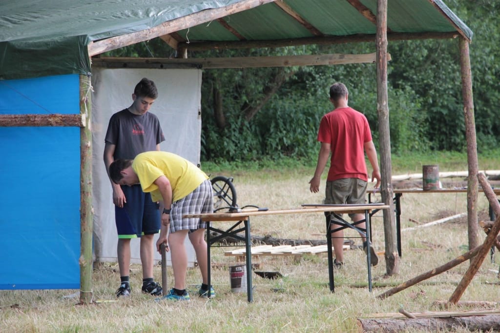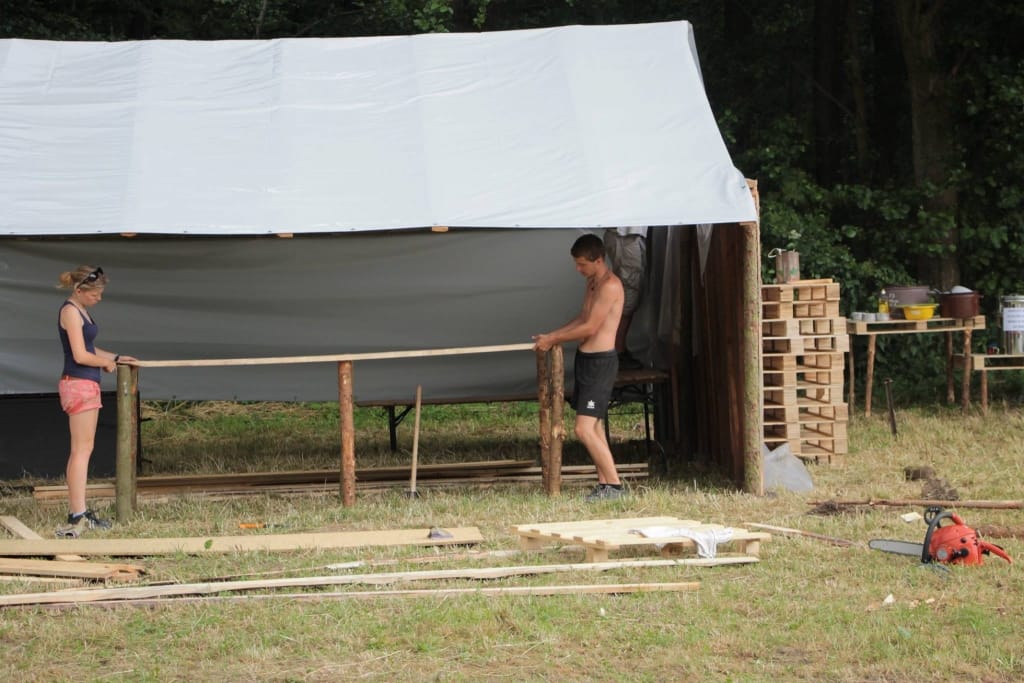 Zde naleznete fotky ze stavby našeho tábora. Jelikož jsme stavěli na "zelené louce" bylo potřeba vyrobit a postavit naprosto vše. Vznikla nová kuchyně, umývárky, most, látrýny a mnoho dalšího. Na všechny stavby a jejich tvořitele se můžte podívat níže.
