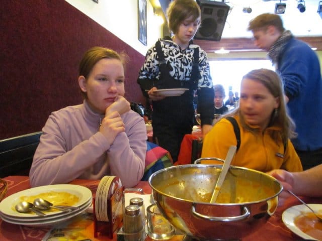Když jsme se opět všichni sešli v budově, převlékli jsme se do suchého a přišel teplý oběd. Na oběd jsme měli rajskou omáčku s knedlíkem a sekanou. Následovalo osobní volno a večer jsme leptali sklo, což byla zajímavá rukodělka, kterou si pro nás připravila Štefka. Každý dostal skleněnou dózu a na ni si namaloval různé ornamenty.