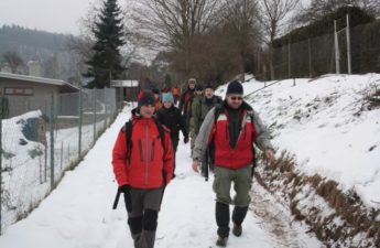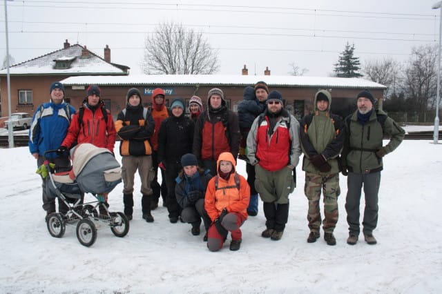 Tento rok jsme se ráno vydali do Tišnova vlakem a odtud šli po modré značce přes rozhlednu a pár kopečků do Veverské Bítýšky. Cesta nebyla nijak náročná a dokonce nám i věkový průměr snižovaly Klárka a Anička Janíkovic. Někteří z nás absolvovali i autoškolu na jízdu terénem s kočárkem, a všichni praktickou část zvládli.