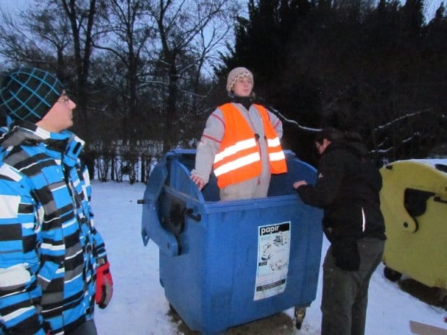 Nyní bylo třeba najít vhodnou popelnici, na cestě k ní nás provázel šéf všech recyklopopelářů – Eda. Když jsme popelnici konečně našli, dovalili na Náměstí Svobody a otevřeli, objevili jsme vzkaz, podle kterého se všechny potřebné informace nacházejí v knihovně. Nejbližší knihovna byla Mahenova, a opravdu, v dětském oddělení čekala na každou recyklobandu brožura s popisem jak a kde třídit odpad. Bylo to v celku jednoduché, vytáhli jsme si odpadek z centrální popelnice a běželi ho vytřídit na příslušné místo, kde na nás ovšem čekaly nelehké úkoly. Ale i ty jsme úspěšně splnili a nakonec celou popelnici roztřídili. Teď už na dně zbývalo jen šest posledních odpadků, které bylo třeba odvézt do spalovny.